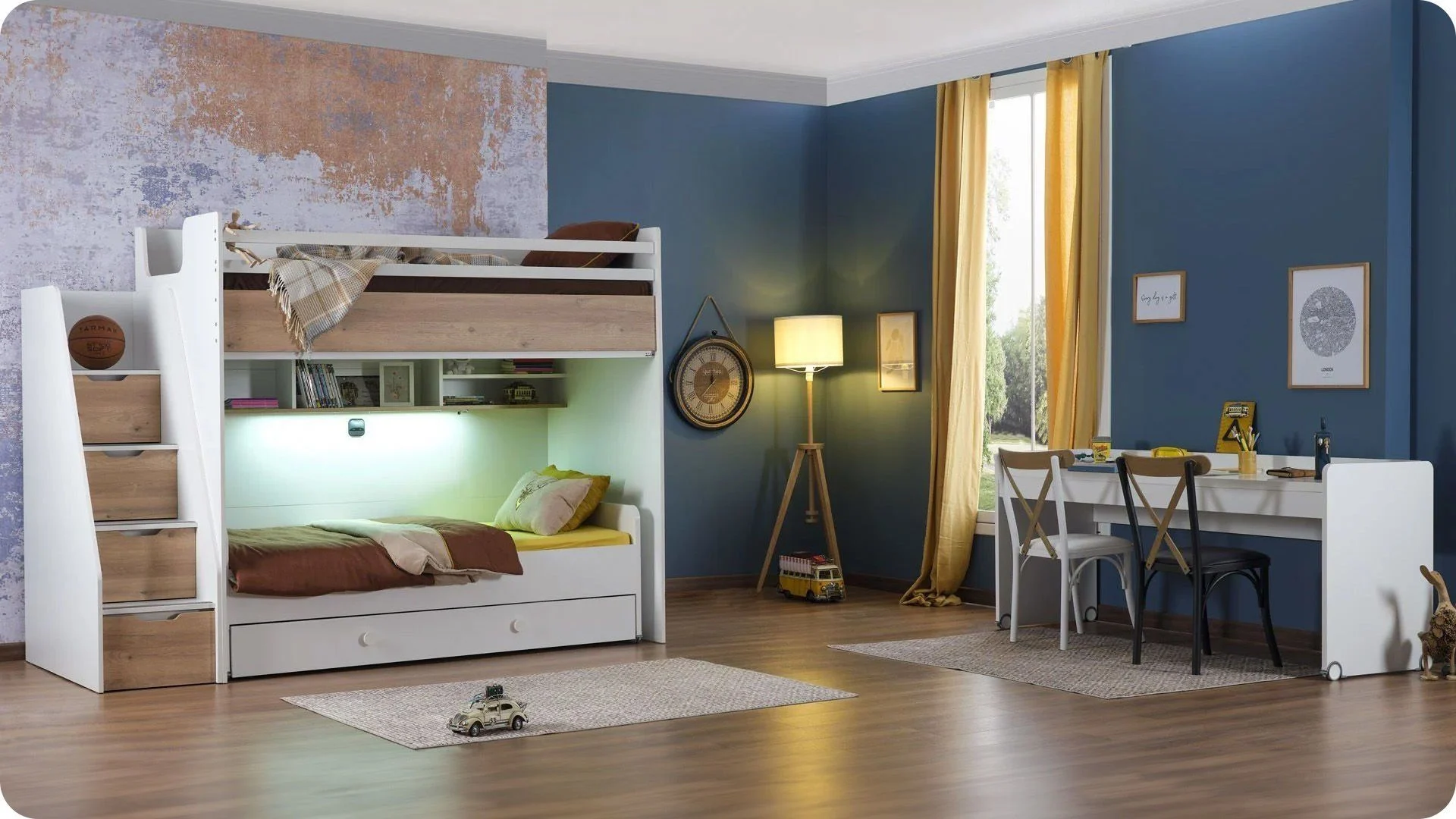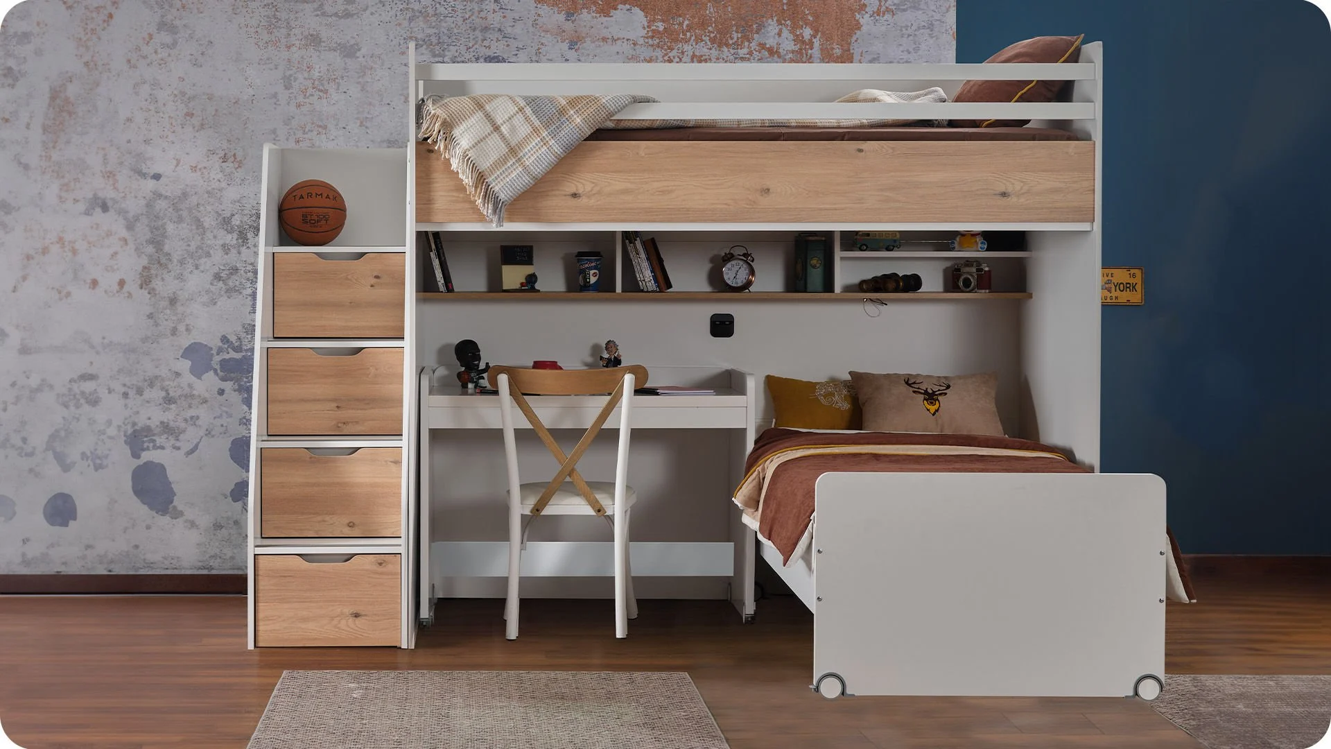 - Δυνατότητα εύκολης μετακίνησης του γραφείου και του κρεβατιού χάρη στους ενσωματωμένους τροχούς.