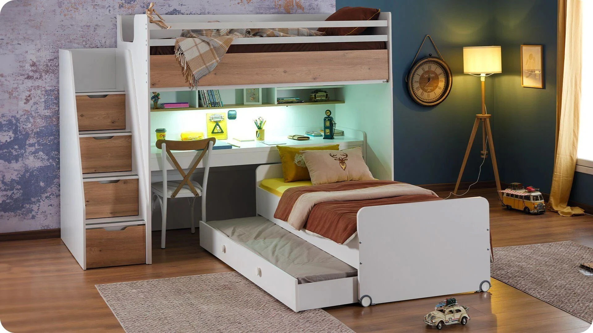 | Τύπος κρεβατιού κουκέτας | Κουκέτα 3 ατόμων, Κρεβάτι με γραφείο, Παιδικό κρεβάτι Loft (κενό από κάτω) |