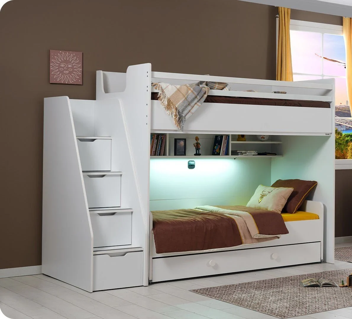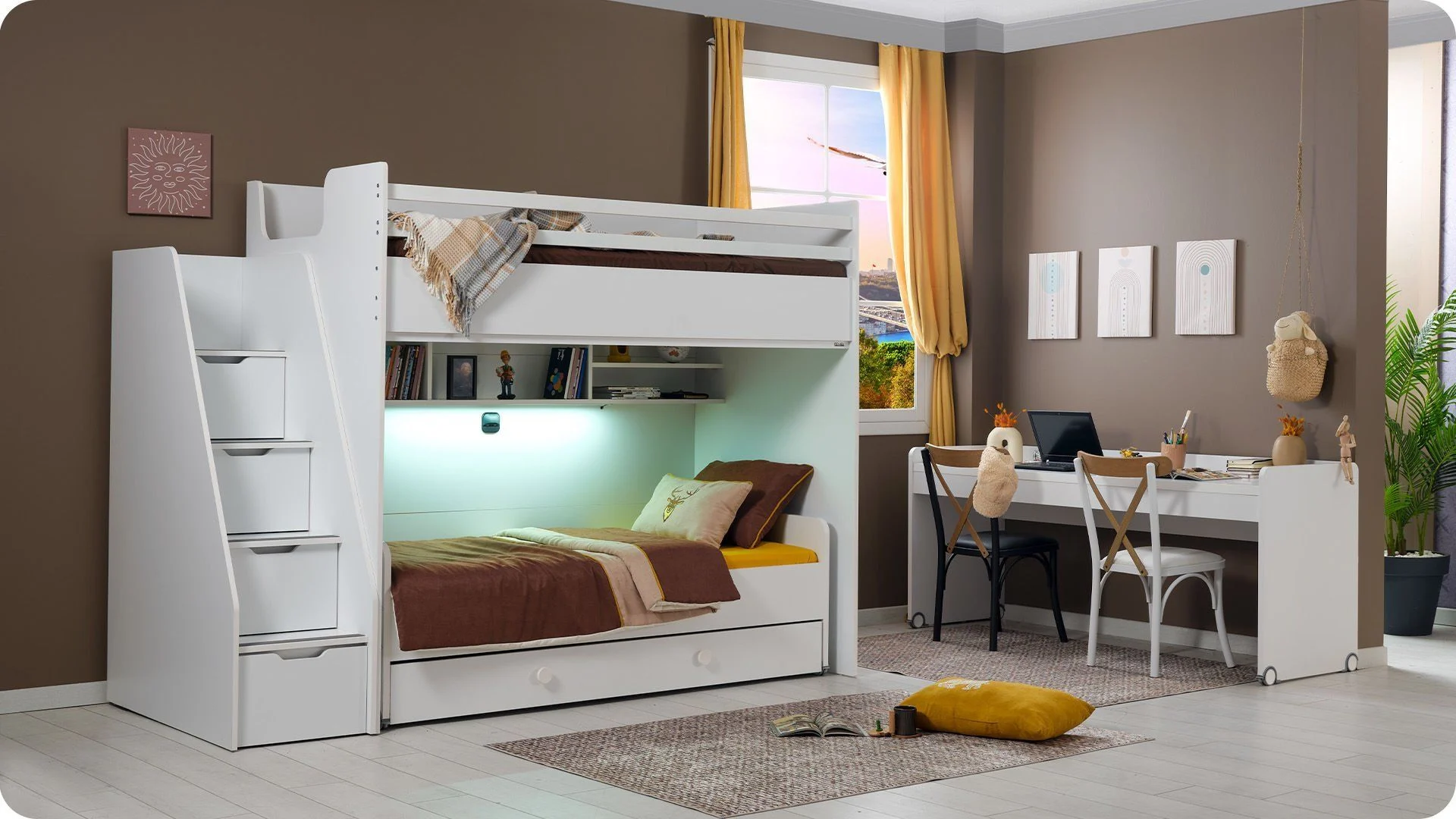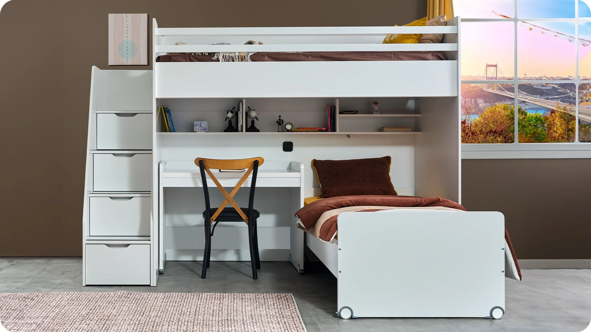 - Δυνατότητα εύκολης μετακίνησης του γραφείου και του κρεβατιού χάρη στους ενσωματωμένους τροχούς.