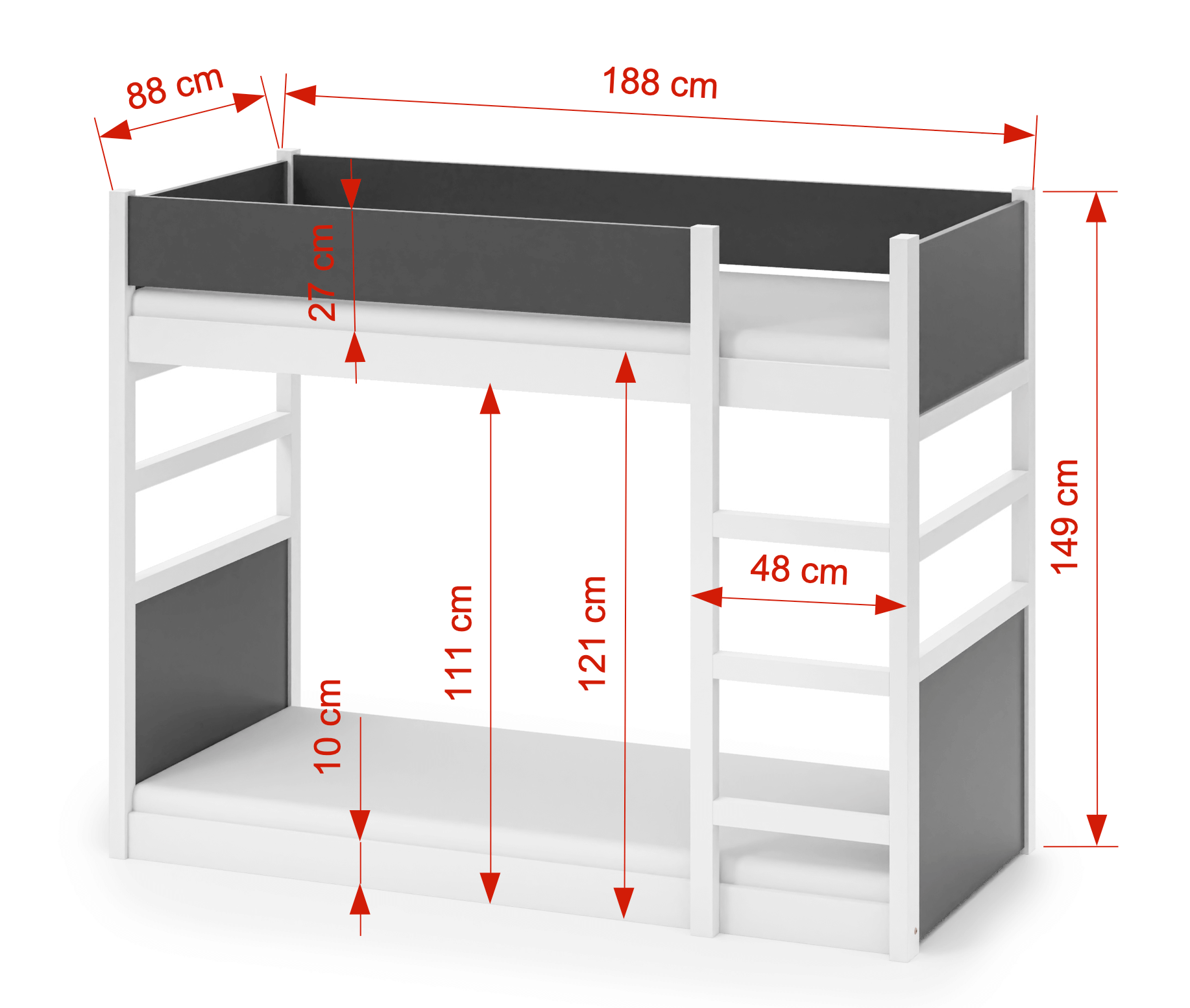 • Απόσταση μεταξύ των δύο κρεβατιών: 111 cm