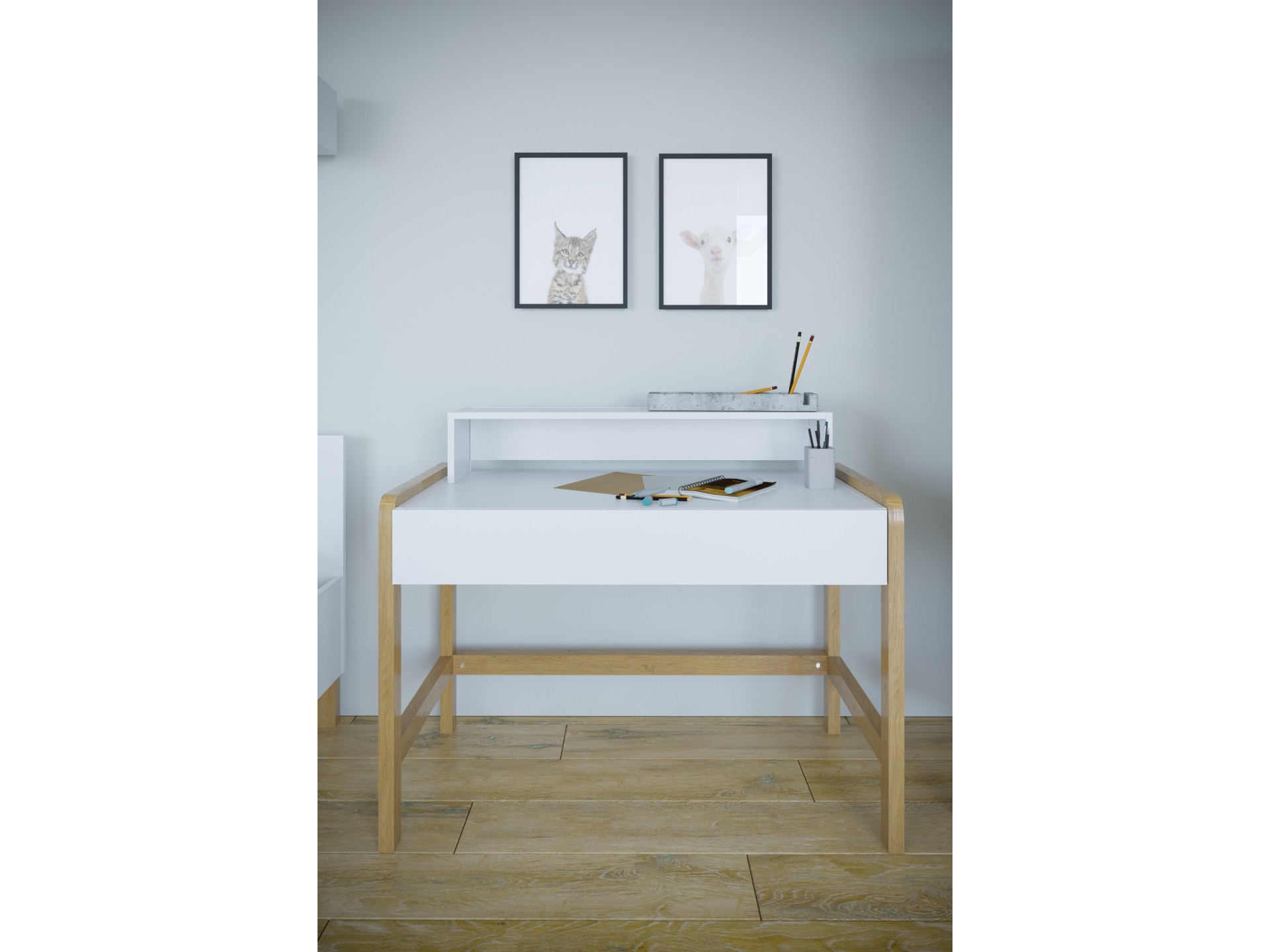 Η τιμή αφορά ένα εκθεσιακό τεμάχιο με ράφι και συρτάρι στο χρώμα της φωτογραφίας. Διατίθεται ανοιχτό στο κατάστημα της Νέας Σμύρνης. Το γραφείο Victor, από φυσικό ξύλο δρυός και λευκή μοριοσανίδα, συνάδει με τις τάσεις του σκανδιναβικού στυλ. Η φυσικότητα των στοιχείων σας επιτρέπει να δημιουργήσετε ένα μοντέρνο και λειτουργικό παιδικό δωμάτιο. Τα έπιπλα της συλλογής Victor έχουν σχεδιαστεί με γνώμονα την άνεση του χρήστη. Το βασικό υλικό που συνθέτει το γραφείο είναι μια πιστοποιημένη, πλαστικοποιημένη σανίδα επίπλων πάχους 18 mm, με λευκό φινίρισμα. Η χρήση λουστραρισμένων, ανασηκωμένων ποδιών βελανιδιάς είναι μια μινιμαλιστική λύση που δίνει το αποτέλεσμα ενός άνετου εσωτερικού χώρου. Ένα ευρύχωρο, ενσωματωμένο συρτάρι αυξάνει τη λειτουργικότητα και την ευκολία. Στην συσκευασία υπάρχουν απλές και αναλυτικές οδηγίες για εύκολη συναρμολόγηση. Πληροφορίες Προϊόντος: Μπορείτε να αυξήσετε τη λειτουργικότητα με ένα ράφι από τη συλλογή Victor *το σετ δεν περιλαμβάνει ράφι