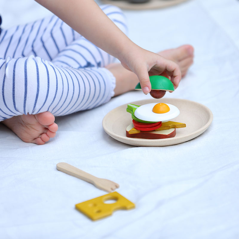 Το πρωινό σερβιρίστηκε! Το σετ περιλαμβάνει 1 πιατάκι, 1 μαχαιροπίρουνο, 1 φέτα ψωμιού, μισό αβοκάντο, 2 φύλλα σπανάκι μπέιμπι, 1 φέτα μπέικον, 1 αυγό μάτι, 1 μανιτάρι, 1 φέτα ντομάτας και 1 φέτα τυρί. Διαστάσεις: ? 16.0 x 1.9 cm | ? 6.3 x 0.7 inch (πιατάκι)