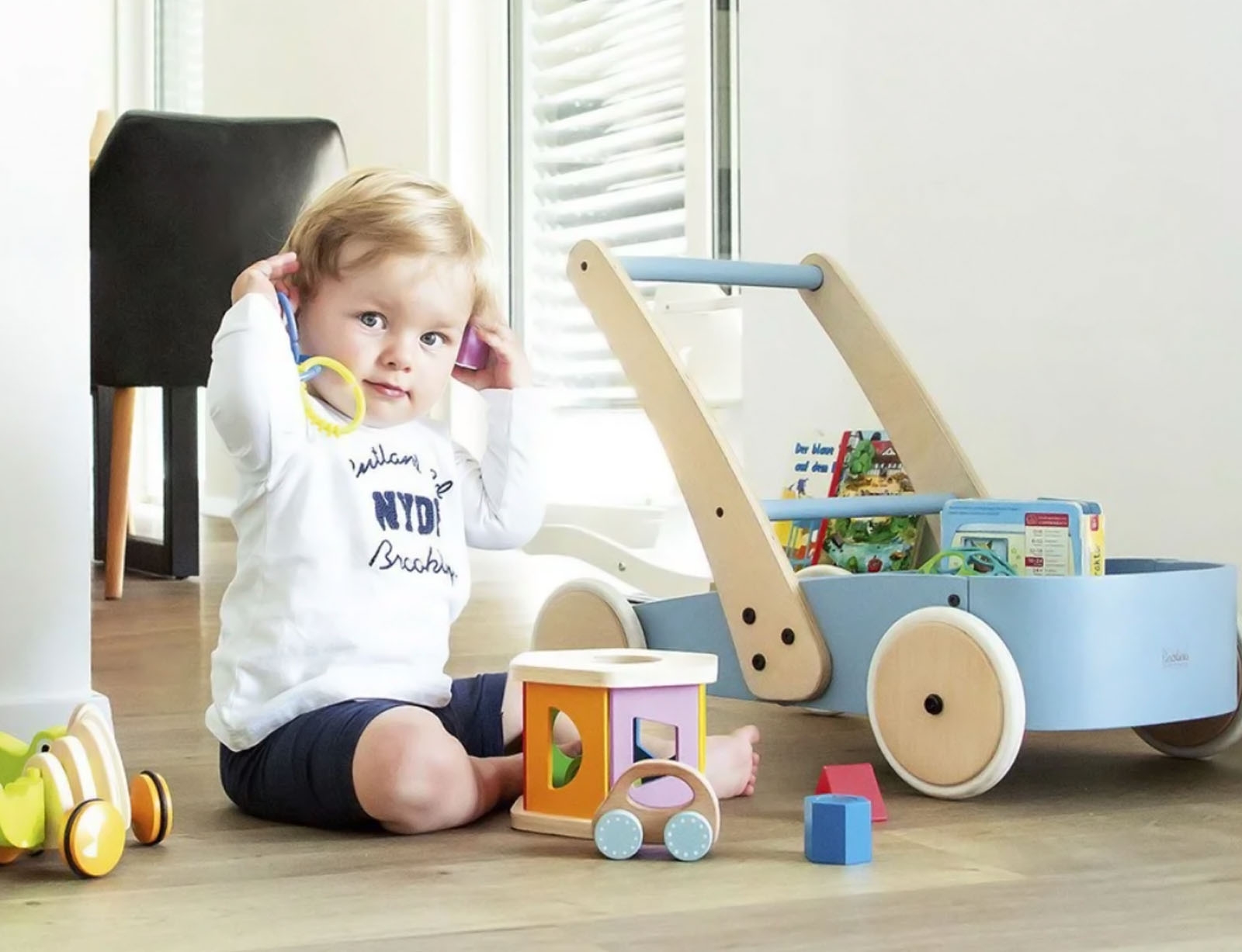 Ξύλινη Περπατούρα Fiete 61x36x48cm – Ηλικίες 1+ Μπλε