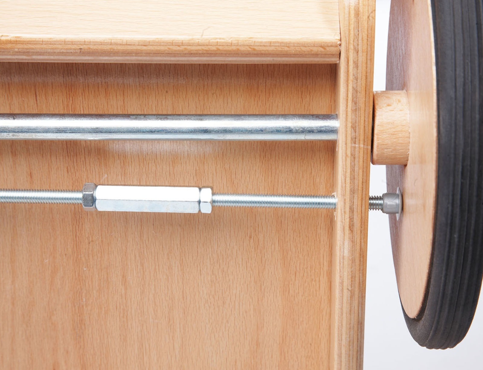 • Υλικό: Ξύλο οξιάς,  MDF (σκελετός), Ατσάλι (άξονες), Καουτσούκ (ρόδες)